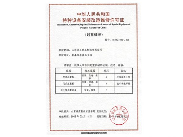 特种设备安装改造维修许可证