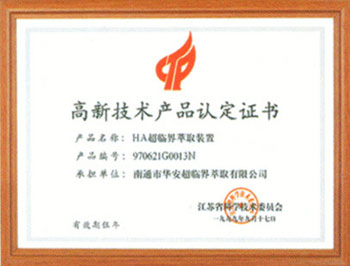 高新技术产品认定证书